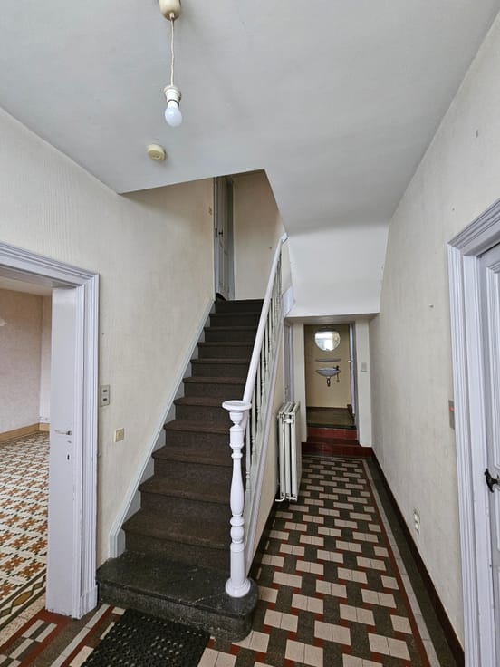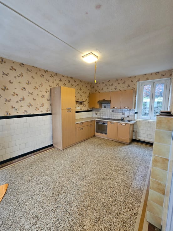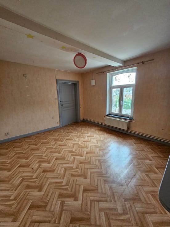 Elle se compose d’un hall d’entrée accueillant, d’une cuisine équipée, d’un séjour lumineux, ainsi que d’une salle à manger conviviale. La maison dispose également d’une salle de bain, d’un WC séparé et de trois chambres confortables. Un grenier entièrement aménageable offre un important potentiel supplémentaire, permettant la création de deux chambres supplémentaires, d’un bureau ou d’un espace loisirs selon vos besoins. Sur le plan technique, la maison bénéficie de nombreux atouts : -Toiture neuve -Toit isolé -Électricité non conforme -Chauffage au mazout À l’extérieur, vous profiterez d’un beau jardin, parfait pour les moments de détente en famille ou entre amis. Une maison saine, bien entretenue et évolutive, offrant de nombreuses possibilités d’aménagement. Cette maison 3 façades séduit par ses belles possibilités d’aménagement et ses volumes intéressants, idéale pour les amateurs de rénovation ou les investisseurs, souhaitant valoriser un bien à fort potentiel. – Le premier étage, déjà aménagé, se compose d’un hall d’entrée, de deux chambres, d’une cuisine et d’un séjour lumineux, offrant un cadre de vie agréable et fonctionnel. – Le rez-de-chaussée, actuellement non aménagé, représente une opportunité rare : il permet d’imaginer de nombreux projets (espaces de vie supplémentaires, bureau, atelier, logement indépendant, etc.), selon vos envies et vos besoins. Caractéristiques techniques : – Toiture en très bon état – Châssis double vitrage en PVC – Électricité non conforme – Chauffage au gaz (avec tank à gaz)