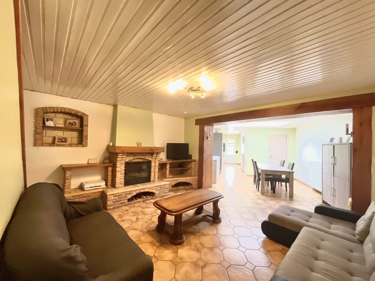 Maison deux façades avec jardin et possibilité de cinq chambres Cette maison deux façades présente une configuration intéressante et offre de beaux volumes. Les espaces de vie bénéficient d’une belle luminosité, notamment au niveau de la salle à manger grâce à un large puits de lumière avec coupole. La facilité de stationnement constitue un atout appréciable au quotidien. Le bien dispose également d’un jardin agréable et d’un potentiel d’aménagement supplémentaire, permettant d’envisager jusqu’à cinq chambres. La maison se compose comme suit : Au rez-de-chaussée : • Hall d’entrée, • Une première pièce polyvalente pouvant servir de bureau, salle de jeux ou chambre selon les besoins, • Un espace séjour spacieux et lumineux, • Une cuisine équipée, • Une salle de bain avec douche et WC, • Une buanderie, Au premier étage : • Hall de nuit, • Trois chambres, dont une plus spacieuse, Au grenier : • Grenier offrant la possibilité d’aménager deux grandes chambres supplémentaires. Extérieurs : • Terrasse, • Grand jardin, • Abri de jardin, • Potager. Aspects techniques : • Châssis PVC double vitrage, • Chauffage central au gaz, • Toiture principale entièrement neuve et isolée, • Toitures plates neuves et isolées, • Coupole neuve. Pour plus d’informations ou pour organiser une visite, contactez-moi : Matteo Carpenito (IPI 515 583) VENTE-IMMO +32 0475 25 45 45 +32 0498 33 82 23 ✉️ matteo@vente-immo.com
